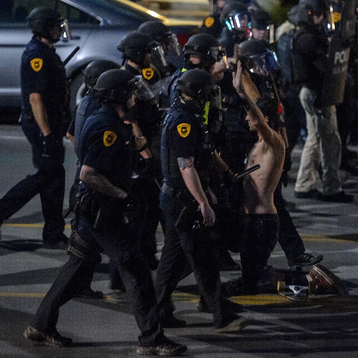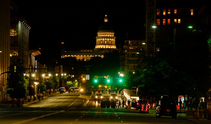 Later in the evening, a line of police forced protesters away from the public safety building, with a few rubber bullets fired to disperse the crowd. Still, hundreds of participants marched through the city well after the curfew went into effect and they promised to return tomorrow for another protest, whether they will face the same 8 p.m. curfew. in the area in violation of the new curfew.