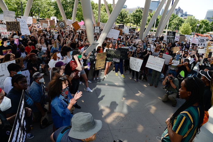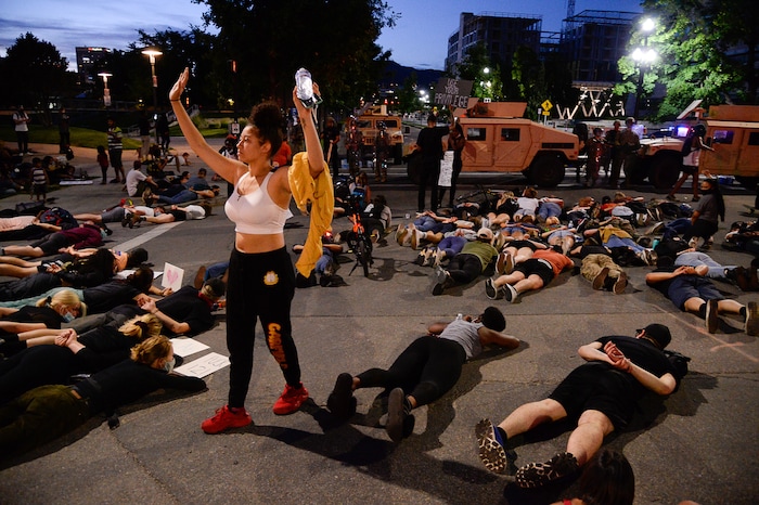 She led chants, telling the crowd of a few hundred people to say George Floyd’s name, and then she asked everyone to lie down. For eight minutes. Just like he did.