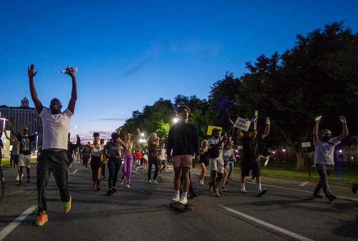 (Francisco Kjolseth | The Salt Lake Tribune) Demonstrators protesting against police brutality make their way to the University of Utah on Wednesday, June 3, 2020, in Salt Lake City, as the initially set 8 p.m. weeklong curfew was removed.