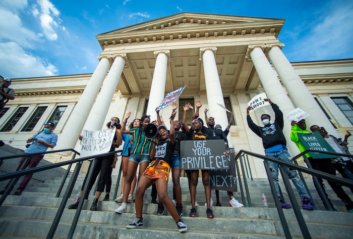 The group chanted again, and, at one point, the words “Black Lives Matter” echoed across the Presidents Circle.