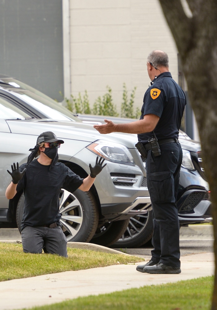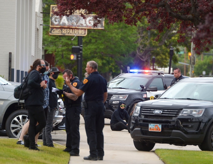 (Leah Hogsten | The Salt Lake Tribune) One of five men, who wished to remain anonymous, is detained after being ordered to get on the ground Friday evening by Salt Lake City Police officers. The men were walking downtown when someone reported that they were allegedly carrying backpacks filled with spray paint. Police released the group after they discovered the backpacks were filled with water, snacks and medical supplies. ÒWeÕre here to help,Ó said one from the group. On Friday, Salt Lake City police officials seemed to be bracing for more protests after the force released the footage from two officersÕ body cameras of a man whom officers shot and killed, May 23, 2020. Bernardo Palacios Carbajal, 22, of Salt Lake City, was killed in the shooting near 900 South and 300 West.