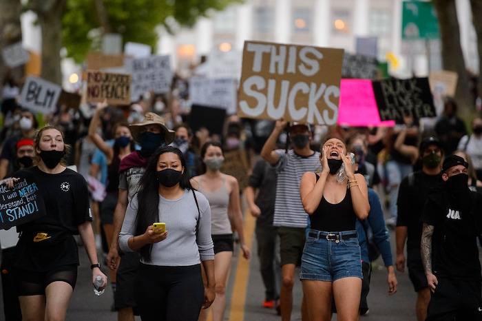 The release of the bodycam footage came after a week of nightly protests in Salt Lake City in response to the May 25 death of George Floyd, a black man who was killed in Minnesota by a white officer who knelt on his neck for almost nine minutes. His death sparked rioting and looting in that state and has led to protests against racism and police brutality across the country.