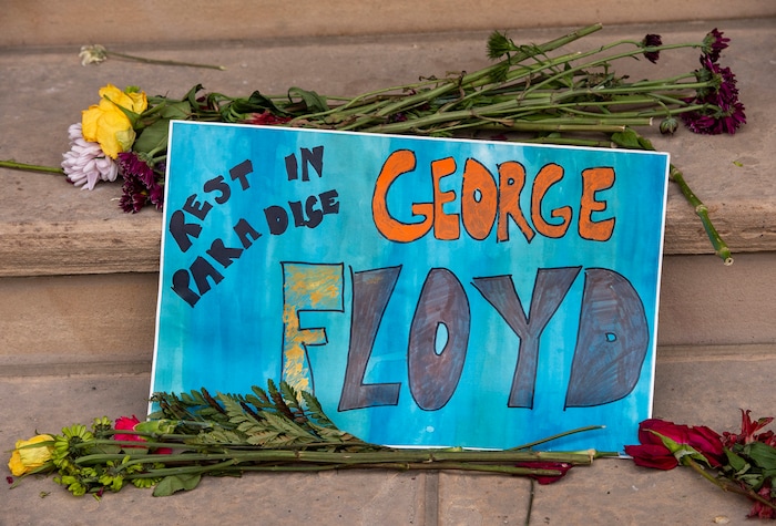 (Rick Egan | The Salt Lake Tribune) George Floyd Memorial on the steps of City Hall on Friday, June 5, 2020.