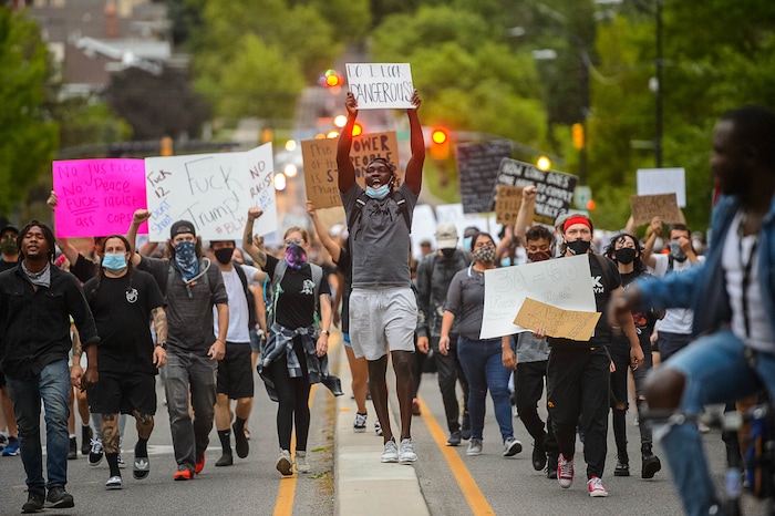 The crowd later formed a procession that traveled from the Capitol to City Hall and the Public Safety Building. It was the second times in two nights protesters had made the several-mile trek to demonstrate.