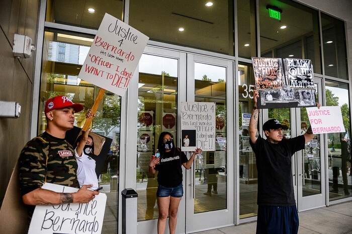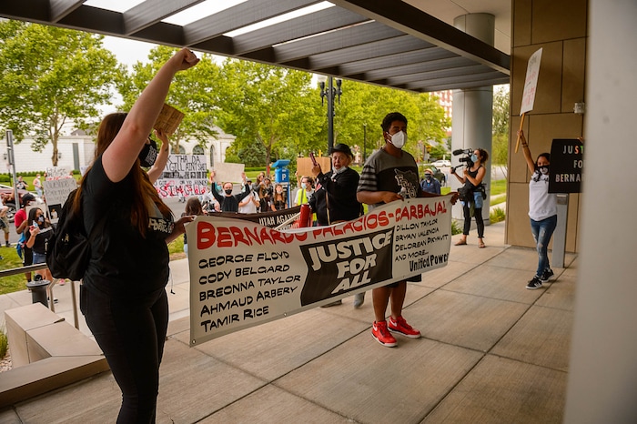 Demonstrators gathered around the front door and chanted that Gill wasn’t doing his job. They wanted him gone. Two women held up a sign listing the names of people killed by police in Gill’s jurisdiction, and how he’d found each officer in those cases to be legally justified in shooting. The names included Cody Belgard, Zane James, Dillon Taylor and Patrick Harmon.