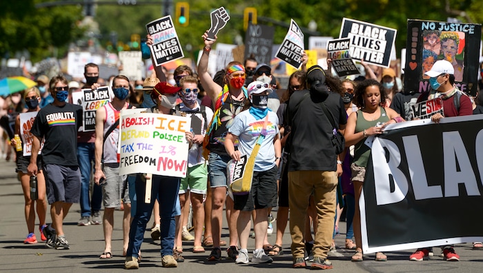 Protesters assembled in Salt Lake City for the 15th time in 16 days to express frustration and outrage over the police killing of George Floyd in Minneapolis, as well as past high-profile incidents where police killed black people.