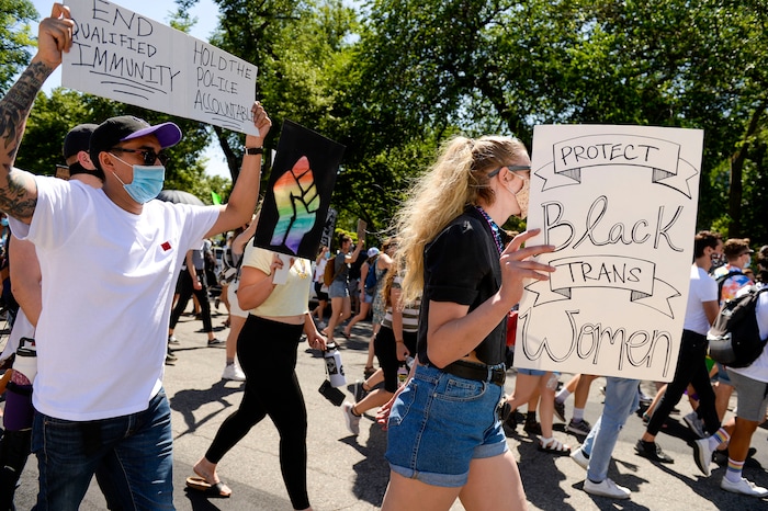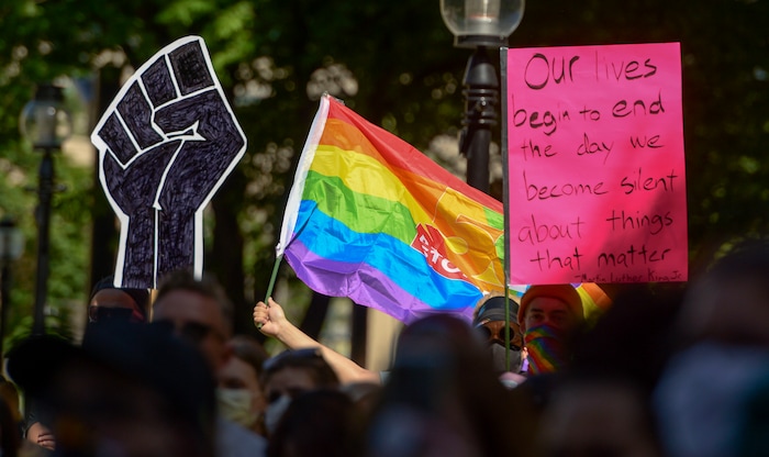 But none of them, nor the couple of thousand protesters who gathered at Liberty Park on Sunday and marched to Washington Square in support of the LQBTQ and Black Lives Matter causes, gave any indication they’d relent. No indication that the fight for the rights of black people, LGBTQ people, people of color or other historically marginalized communities was over.
