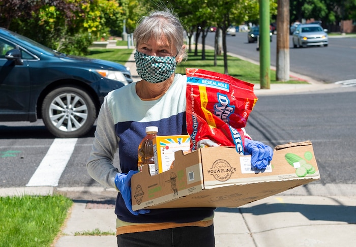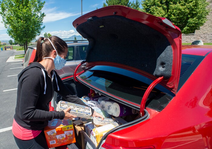 Sanborn was among the volunteers who delivered groceries and toiletries Thursday to households affected by the coronavirus outbreak at the JBS Beef Plant in nearby Hyrum. She didn’t know if someone in the house on the southwest side of Logan had contracted COVID-19. So Sanborn retreated to the driveway before turning to ensure someone walked outside to find the milk, diapers, cleansers and other supplies on the porch.
