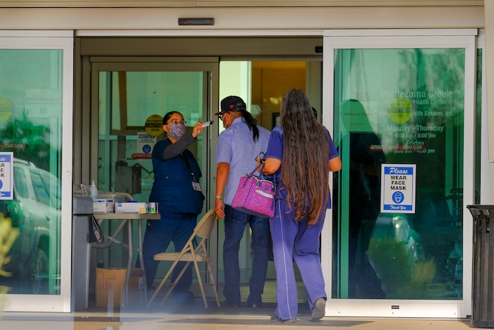 If Smith decides a patient needs a wound bandaged or an injection administered, Begay will go out to the person’s car and take care of the issue. When patients need to come inside for an X-ray or other treatment, they have their temperature taken at the door to ensure they don’t have a fever, a potential sign of a coronavirus infection.