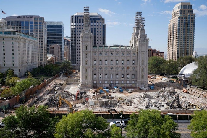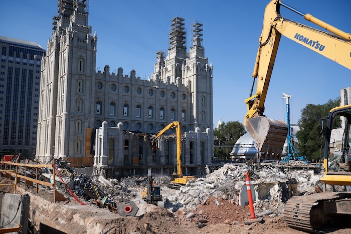 Crews have demolished the parts constructed in the 1960s — the sealing addition, north entrance and chapel — and will soon begin the work of excavating about 40 feet below ground to strengthen the foundation against earthquakes, The Church of Jesus Christ of Latter-day Saints recently announced.