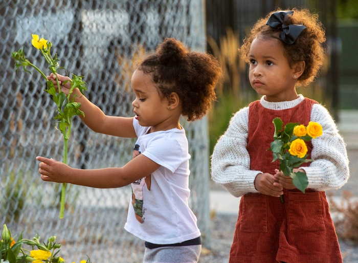 (Rick Egan | The Salt Lake Tribune) Jazarah Staton and Alayla Reuss hold flowers