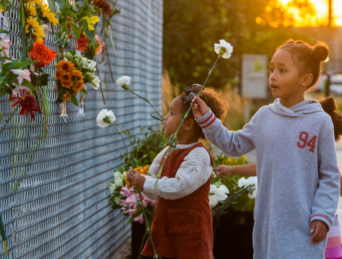 (Rick Egan | The Salt Lake Tribune) Jazarah Staton and Alayla Reuss put flowers