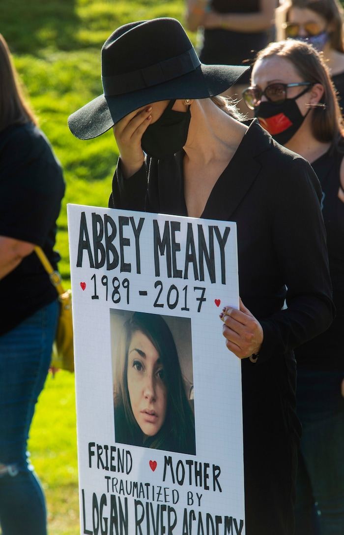 She had gone to Logan River Academy, another Utah facility, and held a sign Friday that had a photo of another former student on it. It was her classmate, Abbey Meany, who died by suicide in 2017.