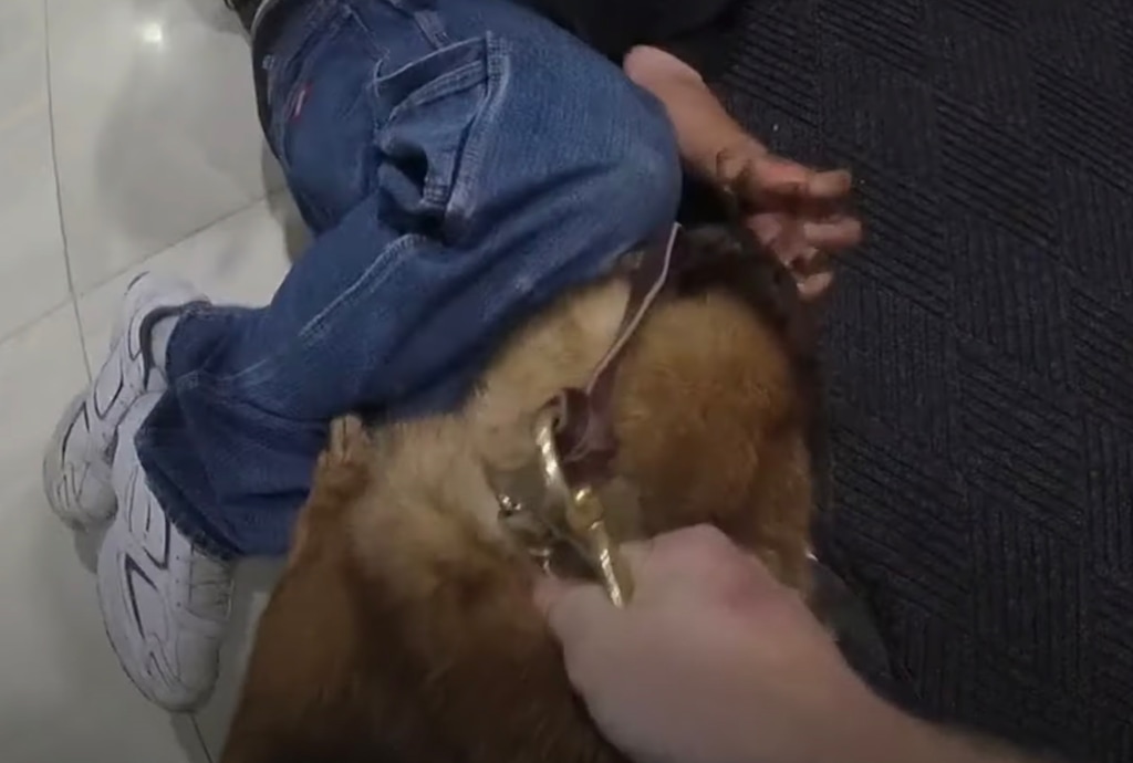When the boy grabs the dog’s ear, an officer tells them to “stop fighting the dog.” He lets go, and the officer grabs the boy’s hand. He yells, “Please, please!”