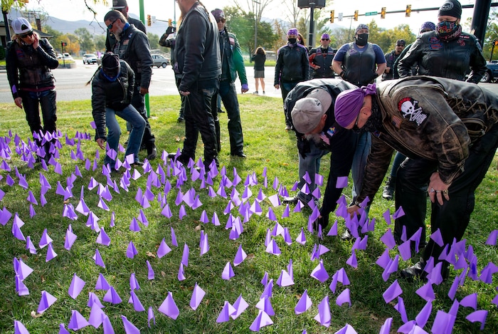 Instead, the newly formed Bikers Against Domestic Violence group drove from Farmington to Salt Lake City on Saturday to stake purple flags into the ground representing survivors of domestic violence, and to call attention to a form of abuse that has only worsened amid the coronavirus pandemic.