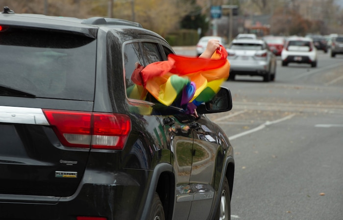 (Francisco Kjolseth | The Salt Lake Tribune) Blair Jones joins supporters of President-elect Joe Biden as they celebrate at Liberty Park on Saturday, Nov. 7, 2020, in Salt Lake City.