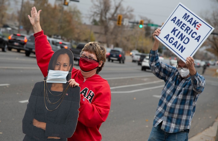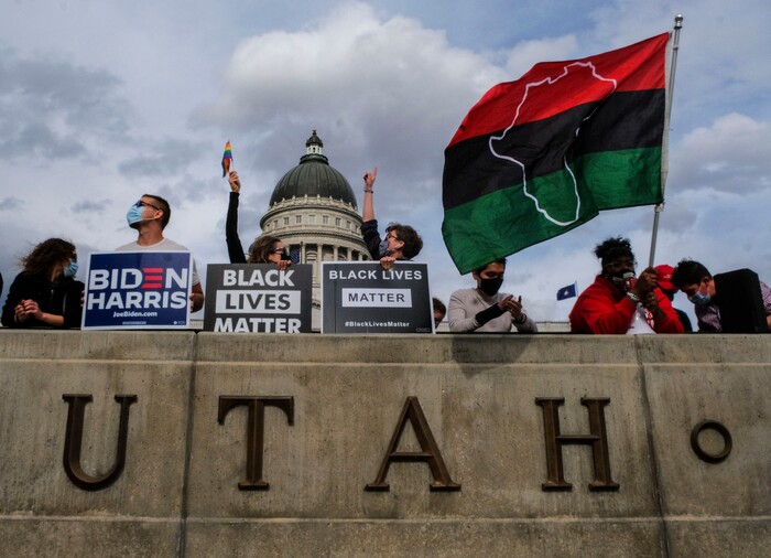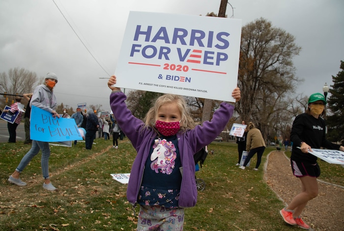 Biden supporters also rallied at the edge of Liberty Park in the afternoon. Waving signs that said “Biden,” “Make America Kind Again” and “Black Lives Matter,” they encouraged those driving by to honk in support. While Trump easily won Utah’s six electoral votes, Biden was the clear favorite in Salt Lake County.