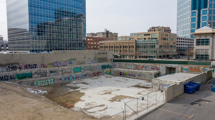 The high-profile property across State Street from the Marriott City Center to the west had sat dormant, rusting and covered in graffiti for years after a prior developer pulled out because of a host of engineering and financial problems. The RDA was even forced to buy the property back from Citibank at auction after the bank foreclosed on previous developer Ben Logue.