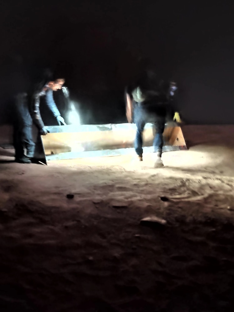 Colorado-based adventure photographer Ross Bernards posted a report to social media Monday, explaining that he and his friends had been photographing the monolith after dark Friday night when a group of four men approached the structure with a wheelbarrow.