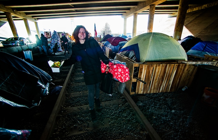 Bellamy said she’s worried the residents will be pushed again and said she’s sleeping at the camp, in part, to ensure she’s on-site if the health department, police or property owners show up. She said she plans to do all she can to fight for the residents to stay and has even organized a calling campaign to Union Pacific asking that they “not raid or move the homeless encampment until after winter is over.”