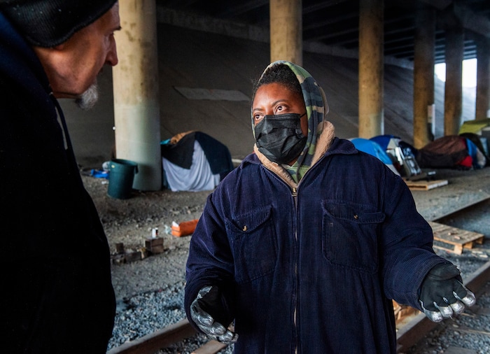 Bellamy — whose role is something between camp host, camp mom and camp security — enforces a strict set of rules that aim to prohibit violence and widespread alcohol and drug abuse. She does a walk-through of the camp every morning to ensure it’s kept clean and has enlisted a daily clean needle exchange. She hosts regular meetings with residents to hear their concerns and find ways to improve the camp. And she’s worked to provide those who live there with CPR training and a kit of naloxone, a lifesaving overdose reversal drug.