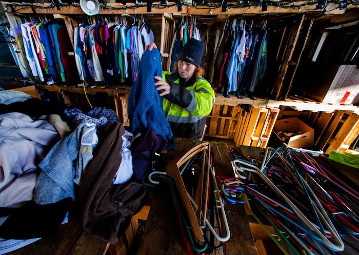 (Rick Egan | The Salt Lake Tribune) Brandy DeGarmo sorts through donations as the manager of the clothing area at Camp Last Hope, Tuesday, Jan. 5, 2021.