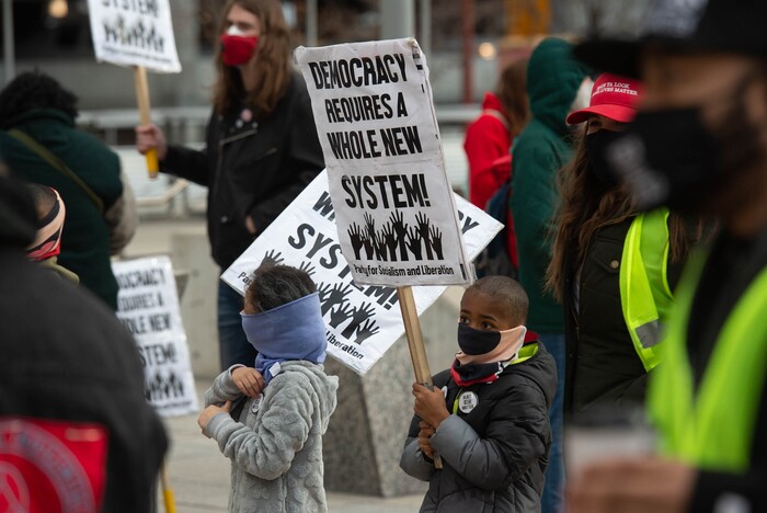 A rally supporting Black lives and strong police oversight that called on the incoming Biden administration to focus on a “working people’s agenda” saw some of its fire tempered Monday after a snowstorm blew in.