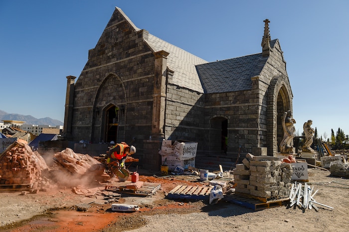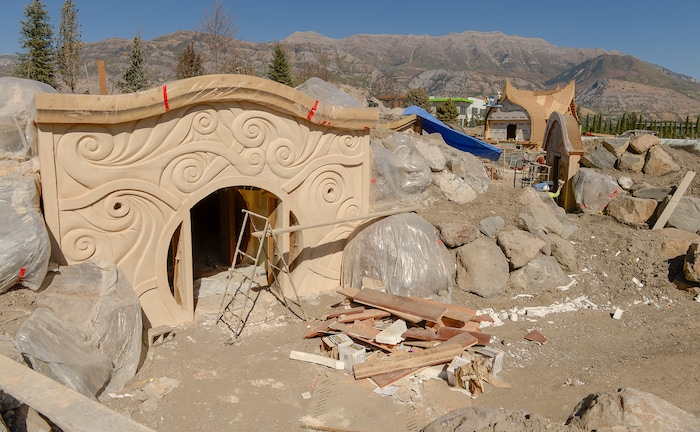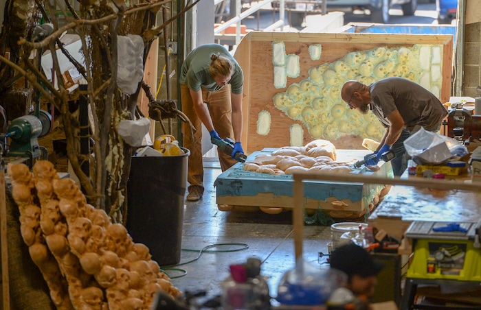 Leah Hogsten | The Salt Lake Tribune Employees in the Evermore FX Shop studio work to bring life to slabs of skulls. Evermore, a theme park in Pleasant Grove with an old-Europe fantasy atmosphere is having a "soft opening" on Saturday, Sept. 22, and an official grand opening on Sept. 29, 2018.