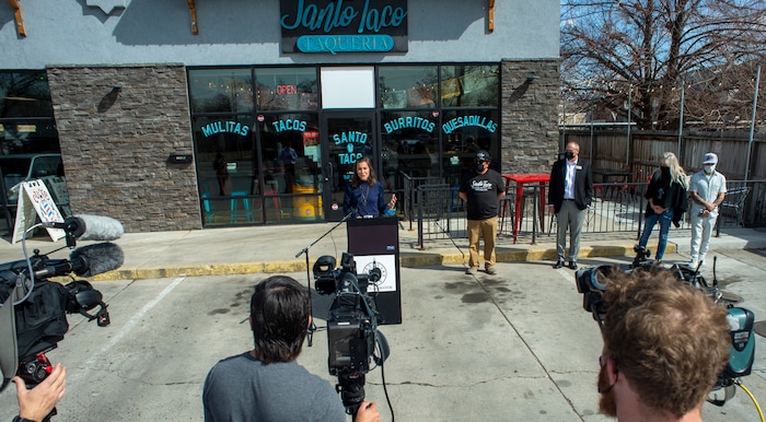 Mendenhall was joined by local business owners at a news conference about masks Friday. Standing in the mid-March sun outside of Santo Taco, Mendenhall said spring is always a hopeful time but it is especially hopeful now as the state sees the light at the end of the tunnel for the pandemic. She said she is grateful to Gov. Spencer Cox for opening vaccinations up to everyone over age 16 starting March 24.