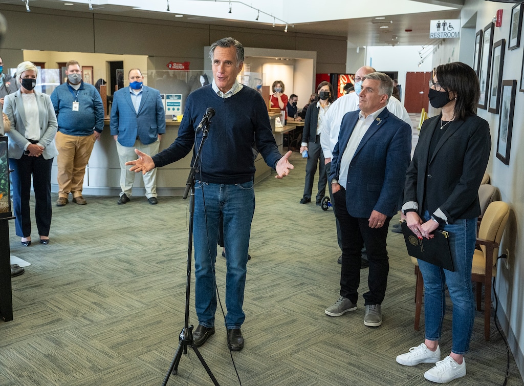 Two of Utah’s top elected officials, Sen. Mitt Romney and Lt. Gov. Deidre Henderson, teamed up Friday to volunteer at a COVID-19 vaccine clinic in Clearfield.