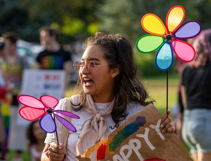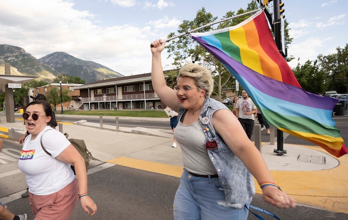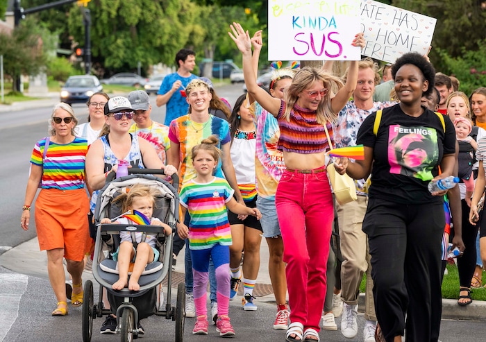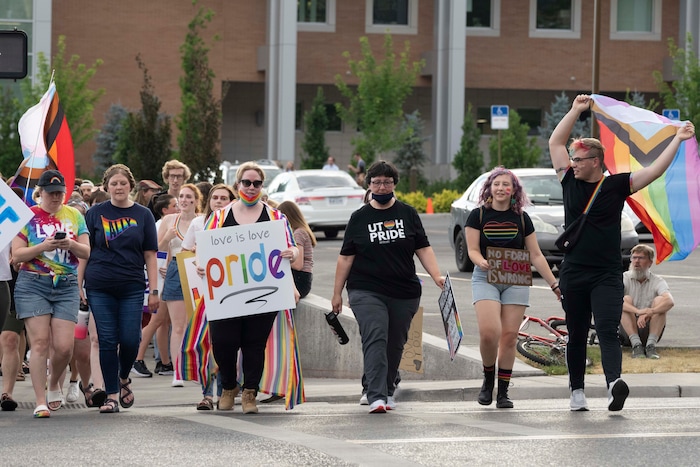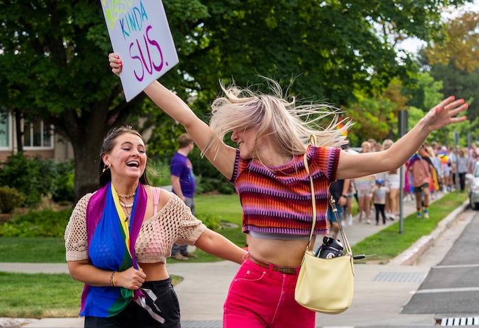 (Rick Egan | The Salt Lake Tribune) BYU students, friends and allies join in a Pride March from Joaquin Park to Kiwanis Park, in Provo, on Monday, June 28, 2021.
