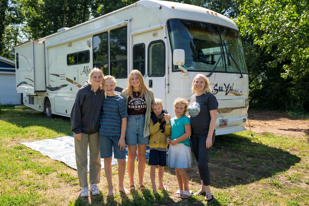 Their “quick solution” to avoid homelessness was to get rid of most of their stuff and move with their five kids — who at the time ranged in age from 5 to 15 — into a 40-foot RV about the size of a bus, Morris said.
