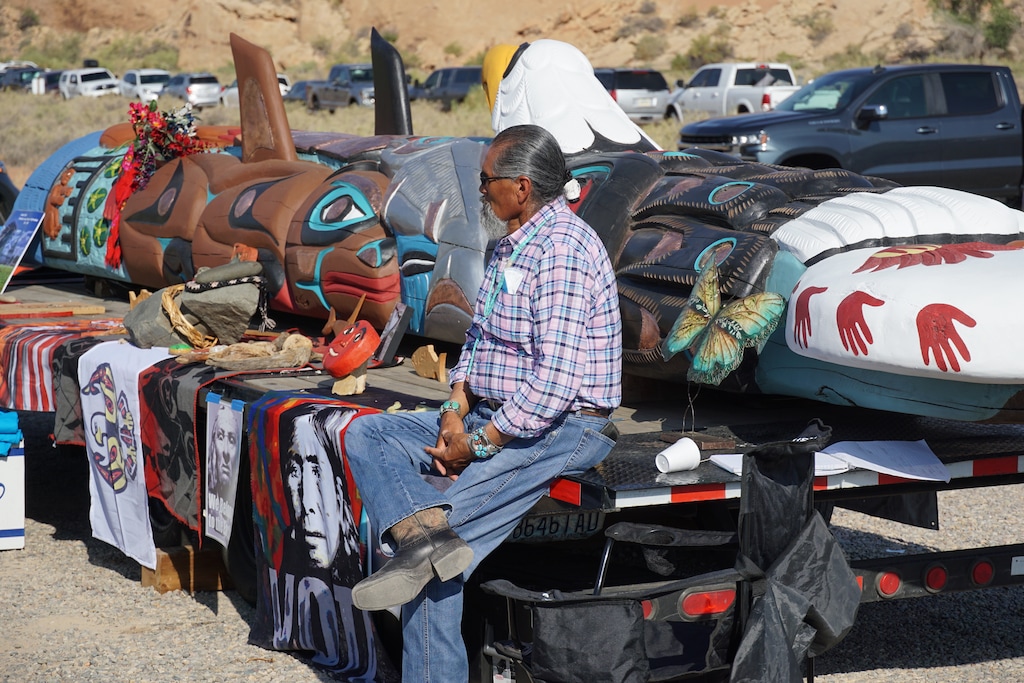 “Our life story is well documented,” Tenakhongva said, gesturing to a petroglyph panel on the sandstone cliffs near the event. “You can see it right here behind us.