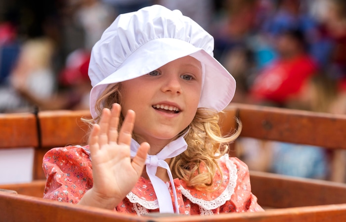 (Rick Egan | The Salt Lake Tribune) Emily Gabetias 10, waves to the crowd as she rides in a train from This is the Place Heritage Park, in the Days of '47 Parade, in Salt Lake City, on Friday, July 23, 2021.