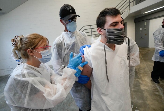 (Francisco Kjolseth | The Salt Lake Tribune) An inmate is given the Johnson & Johnson and Johnson vaccine at the Utah State Prison in Draper on Tuesday, July 27, 2021.