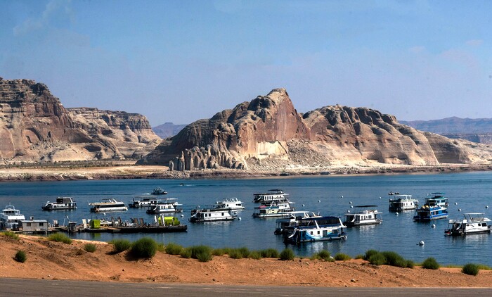 The problems aren’t isolated to Lake Powell’s southern end. Earlier this year, storm damage prompted the National Park Service to close Dangling Rope Marina, the only fuel station in the 100-mile stretch between Wahweap and Bullfrog, further limiting options for the more than 4 million visitors that Glen Canyon National Recreation Area sees in a typical year.
