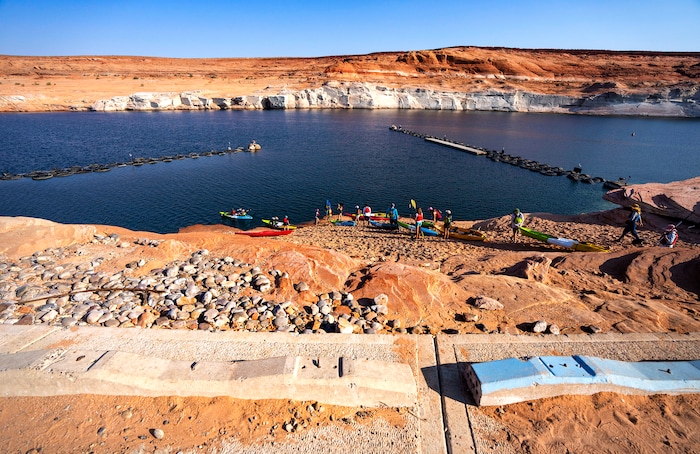 A more permanent launching option is under construction at the Stateline Boat Ramp, a few miles from Wahweap, but it isn’t expected to open before Labor Day.