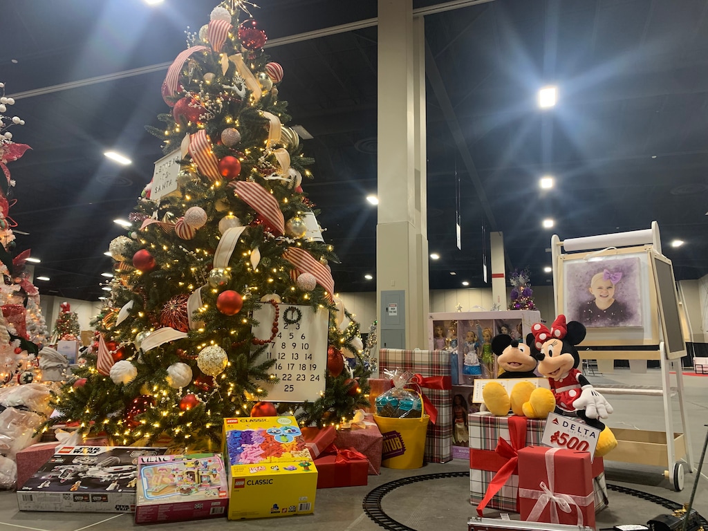 The volunteers who donated the tree loaded it with goodies: A voucher for the Disneyland Resort in California (good for four two-day Park Hopper passes and a hotel stay), a $500 gift card for Delta Air Lines, a Megaplex gift card and several Lego sets.
