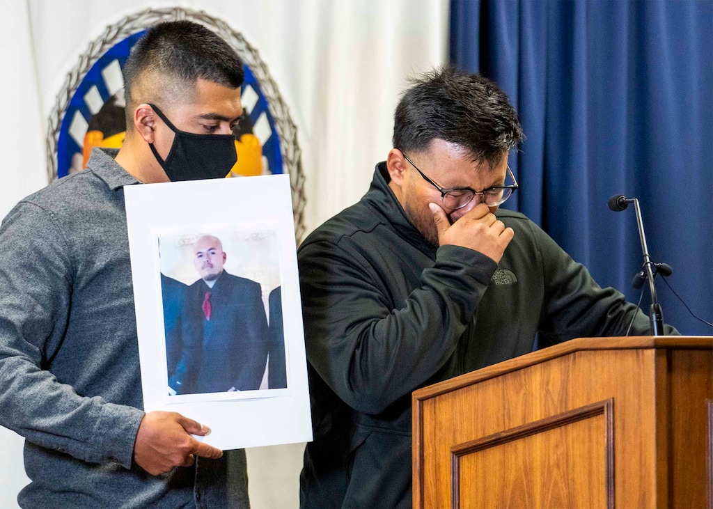 As he stood next to a photo of his older brother dressed in a suit, Angel Reyes became emotional.