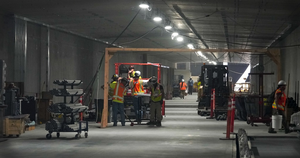 (Leah Hogsten | The Salt Lake Tribune) Construction workers take a break on Tuesday, Aug. 2, 2022, inside Salt Lake City International Airport's Central Tunnel.