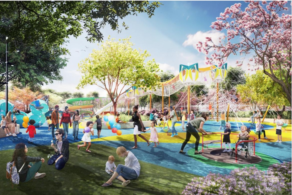 An all-abilities playground with assistive technologies will come in the first phase, along with some adaptable spaces for events and gatherings.