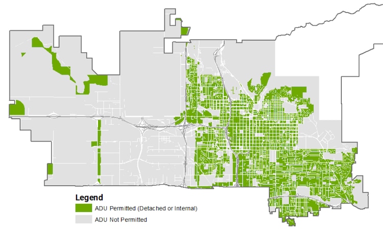 The latest proposed rules would make external ADUs automatically permitted as a land use in additional residential areas, most commercial zones and on properties that already allow a mix of uses — although homeowners and businesses still would need building permits. State law allows internal ADUs in all residential zones, so the city’s rules affect external dwellings alone.