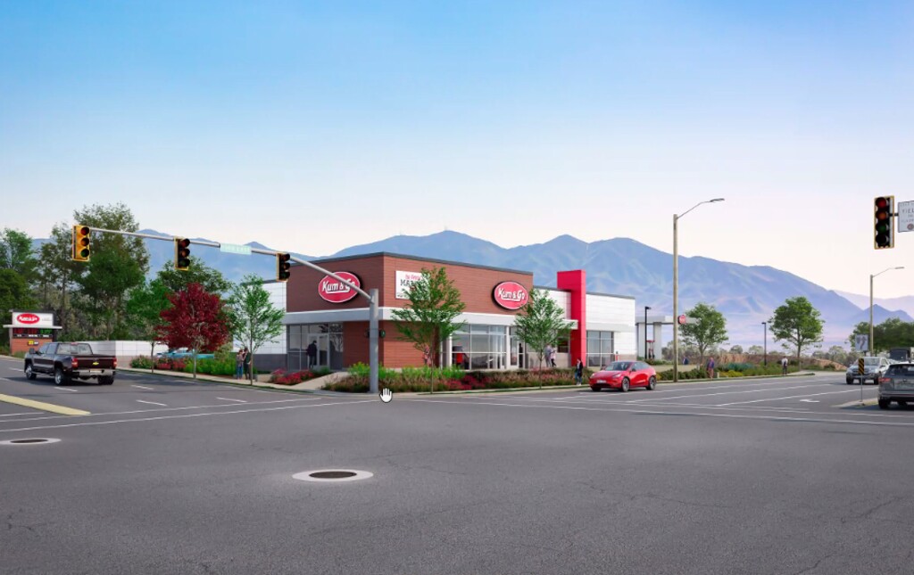 (Galloway & Company) A rendition of a new Kum & Go convenience store and fueling station, proposed for the corner of 2100 South and 1300 East in Salt Lake City, as seen from Sugar House Park. An appeals officer on Wednesday upheld a decision by the city's planning commission to reject the proposal, based on traffic concerns.