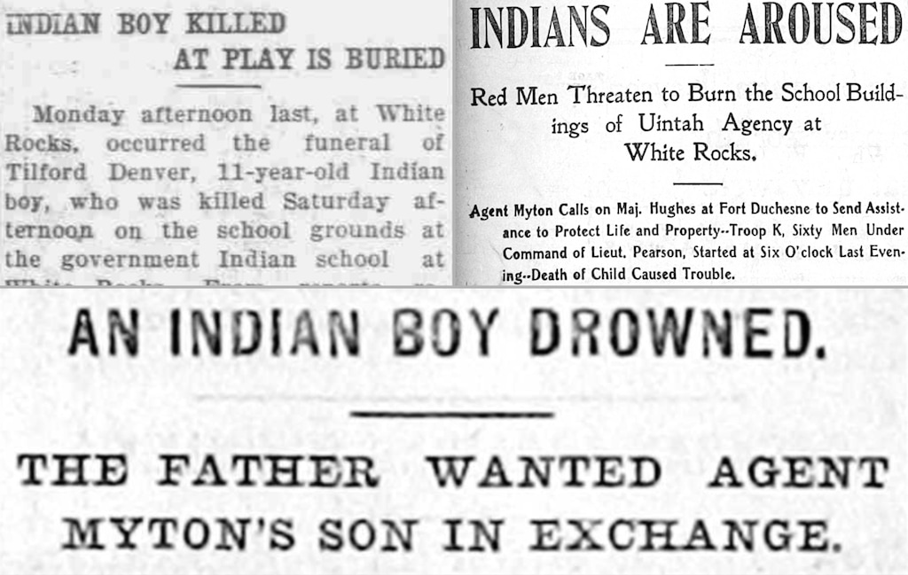 ”This youth I had removed from his parental tepee and put to school at the reservation headquarters, but he fell through the ice some time afterward and was drowned,” Myton told The Tribune. “His parents kicked up a big row, and his father gathered up his friends and came over to headquarters.”