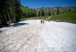 (Leah Hogsten | The Salt Lake Tribune) Visitors to Lisa Falls in Little Cottonwood Canyon take a pause before continuing their hike along the trail on Friday, July 14, 2023.