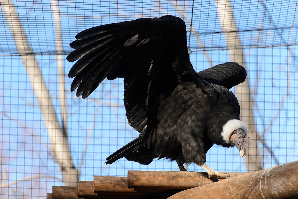 Like other Andean condors, Andy was a large black bird with white patches on his wings and a ruff of white feathers around his neck.
