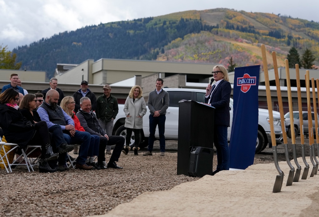 (Bethany Baker | The Salt Lake Tribune) Park City Mayor Nann Worel speaks at the groundbreaking for EngineHouse, the newest affordable housing project in Park City on Wednesday, Oct. 4, 2023. She said said only 15% of the city’s workforce lives within city limits, which makes more affordable housing critically important.