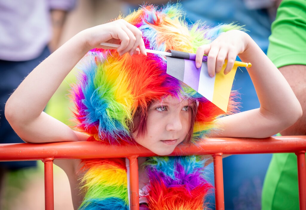 (Rick Egan | The Salt Lake Tribune) A Young girl watches the Pride Parade from her dad's shoulders, on Sunday, June 2, 2024.