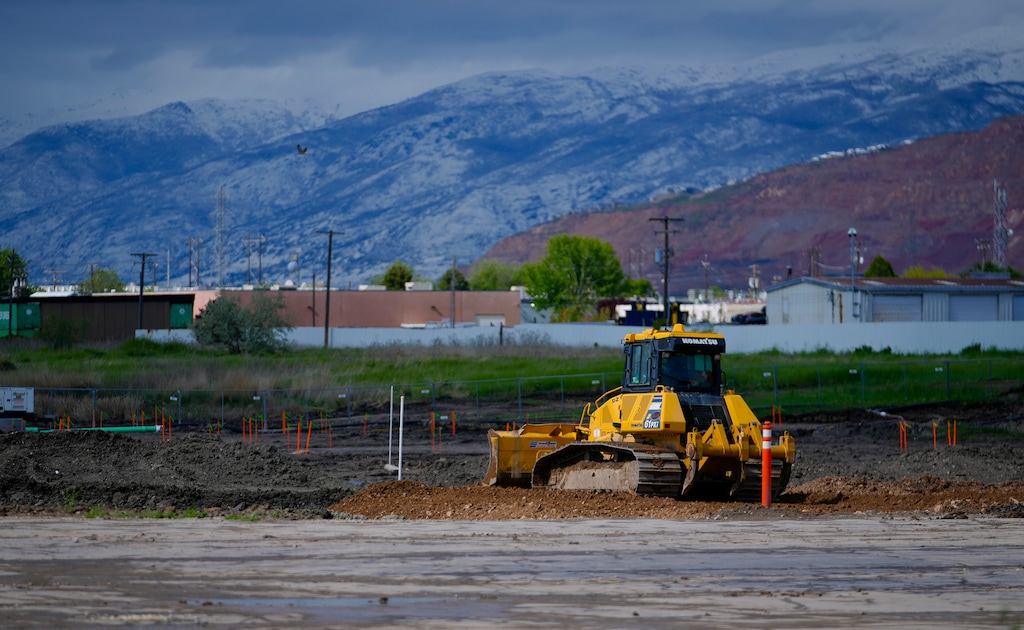 (Bethany Baker | The Salt Lake Tribune) Piles of dirt sit at the construction site for The Other Side Academy in Salt Lake City on Monday, May 6, 2024.