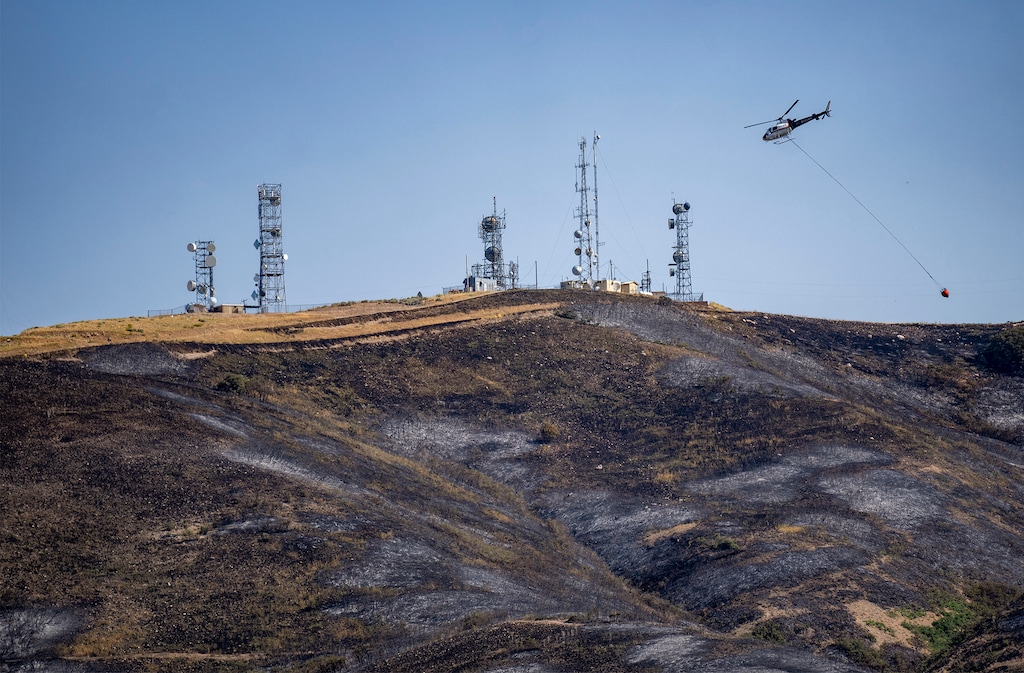 (Rick Egan | The Salt Lake Tribune) Water is dropped on a hot spot, as fire fighters work on the Sandhurst fire behind Ensign Peak, on Sunday, July 21, 2024.